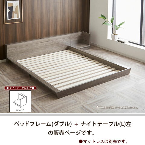 詳細・スペック 商品説明 プラットフォームベッド ダブル&ナイトテーブルL(左) ベッドフレーム+ナイトテーブル(左) 棚・コンセント付き 高さを抑えたロースタイルベッド。