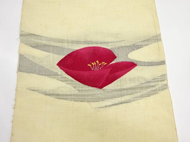 紗 花模様織出し名古屋帯地反物【アンティーク】【中古】【着】 宗sou