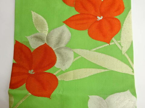 <名古屋帯サイズ>(単位:cm)太鼓部分長さ111.5太鼓部分幅30前部分長さ245前部分幅15 時代 現代(1989 - ) 状態 非常によい 素材 正絹 色目 明るい抹茶 【商品説明】状態は大変良いです。