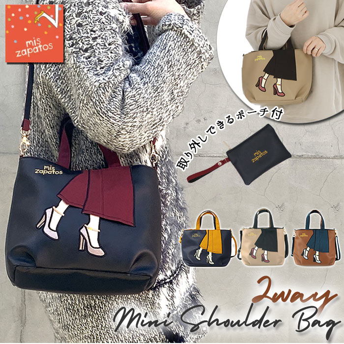 ミスサパト ショルダーバッグ 通販 レディース 斜めがけ 大人 小さめ 2way トートバッグ ミニトート 通勤 通学 サブバッグ 軽量 軽い ポーチ付き 合皮 フェイクレザー ミニショルダー TURN OVER ターンオーバー mis zapatos B-7233 レディースバッグ